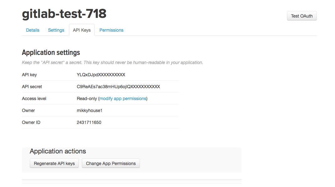 - { name: 'twitter', # label: 'Provider name', # optional label for login button, defaults to "Twitter" app_id: '<your_api_key>', app_secret: '<your_api_secret>' } -