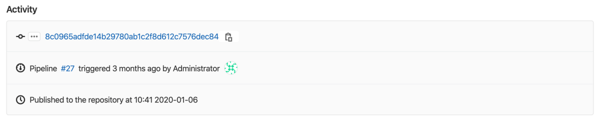 If you use CI/CD to build a package, extended activity information is displayed when you view the package details: